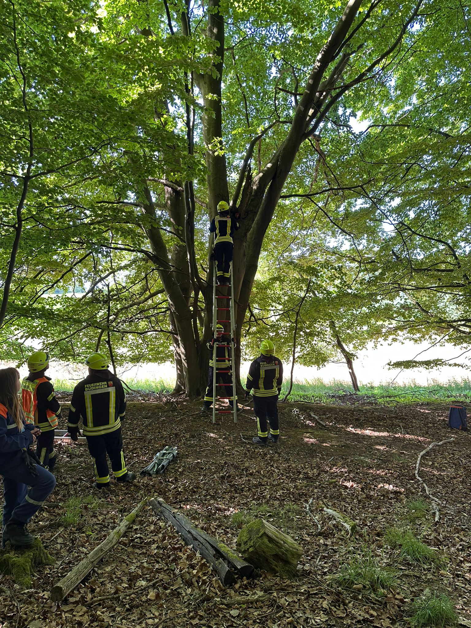 -freiwillige Jugendfeuerwehr war mit vor Ort um die gefundenen und evtl verletzten Menschen zu bergen da das Gelände sehr uneben und bewachsen war.