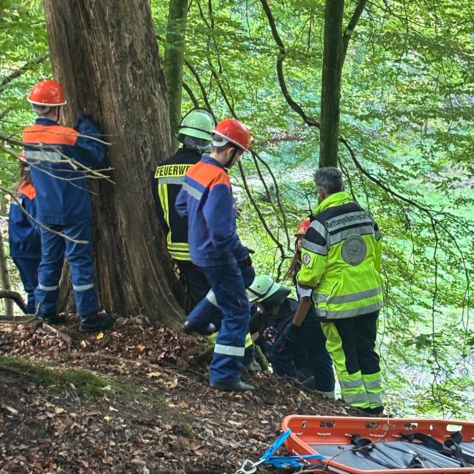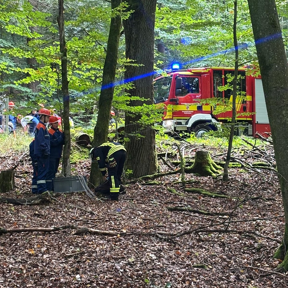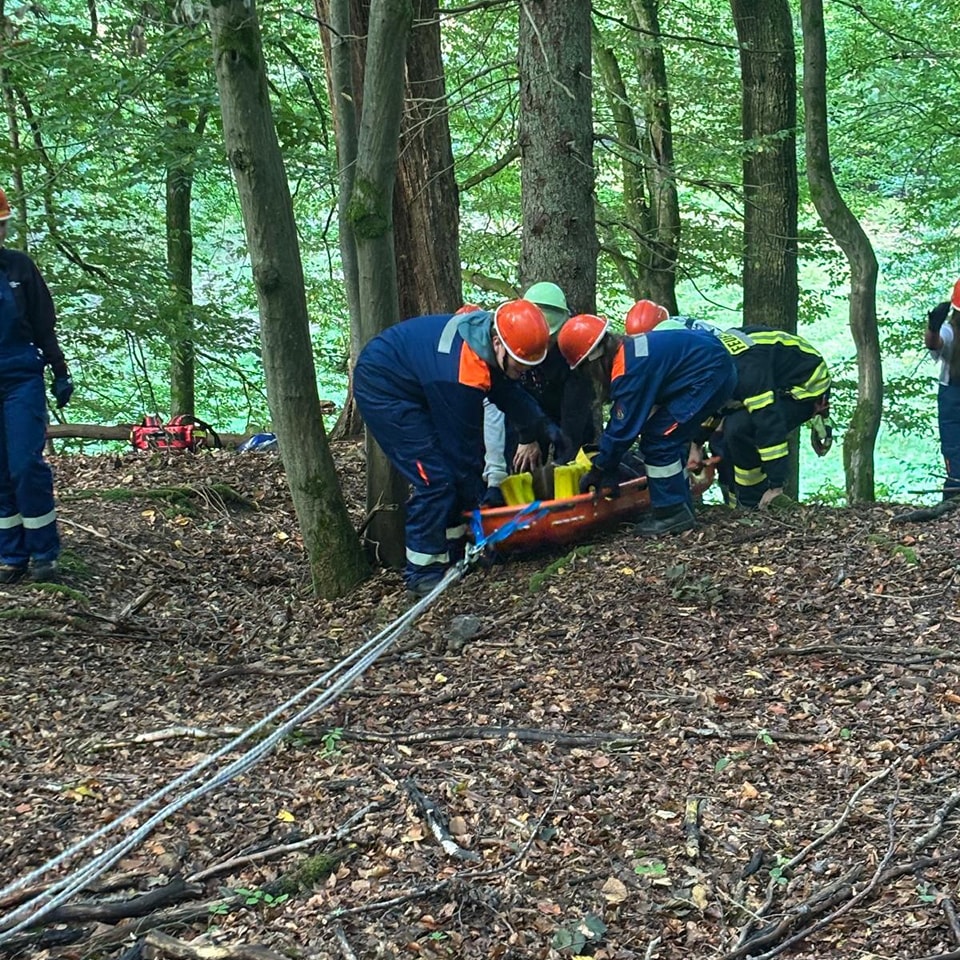 -freiwillige Jugendfeuerwehr war mit vor Ort um die gefundenen und evtl verletzten Menschen zu bergen da das Gelände sehr uneben und bewachsen war.