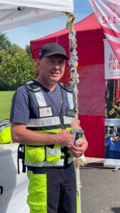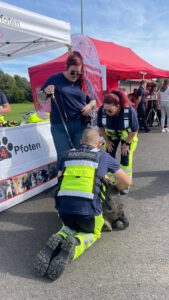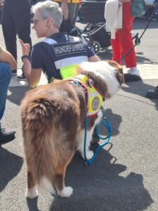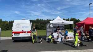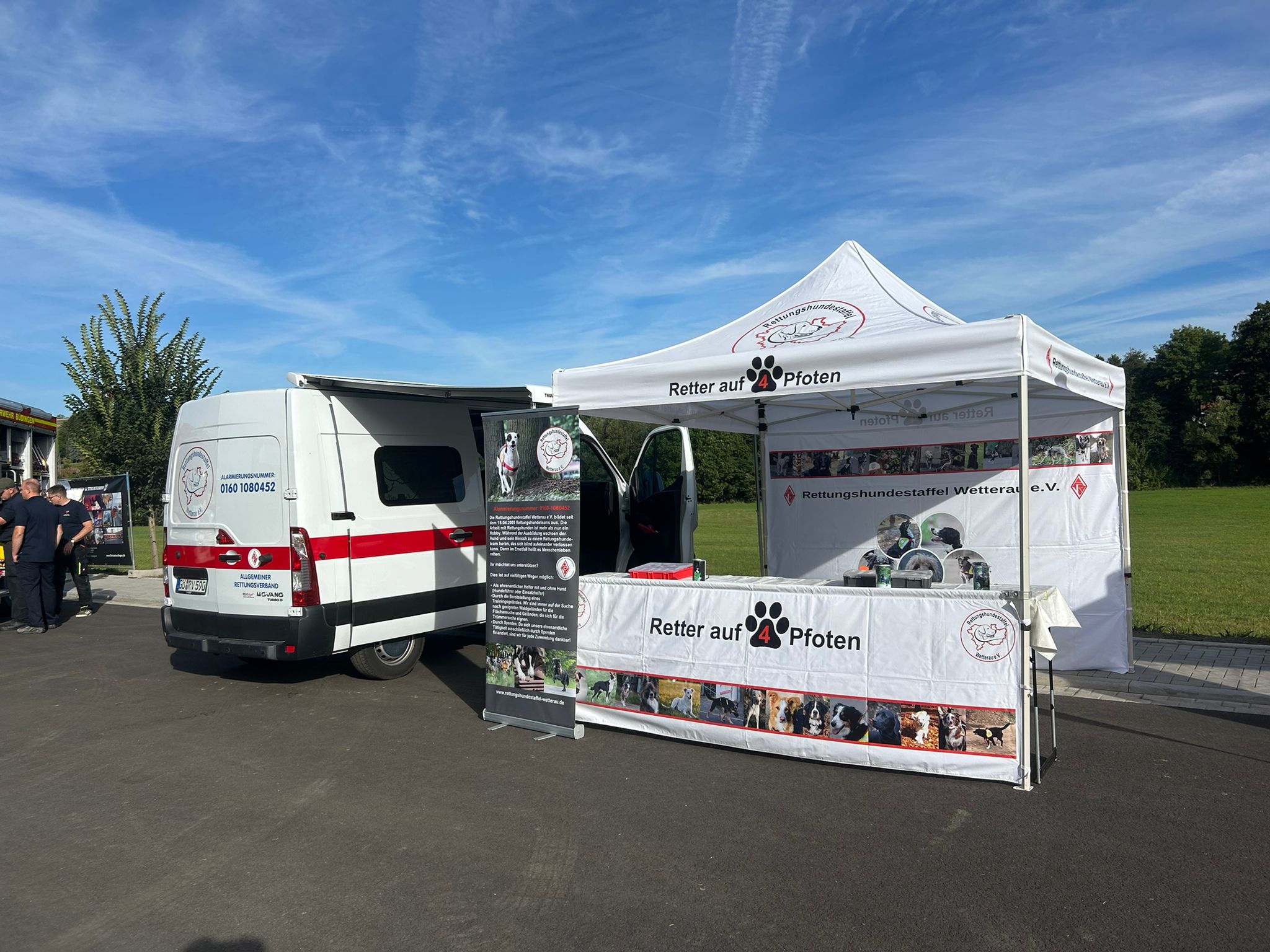Ein besonderes Highlight war der Infostand der Rettungshundestaffel Wetterau e.V., die mit mehreren Hundeführerinnen und Hundeführern sowie ihren ausgebildeten Rettungshunden vor Ort war. Die Staffel, die sich auf die Suche nach vermissten Personen spezialisiert hat, gab spannende Einblicke in ihre Arbeit – von der Ausbildung der Hunde über die Einsatzvorbereitung bis hin zu realen Rettungseinsätzen in unwegsamem Gelände oder bei Nacht.