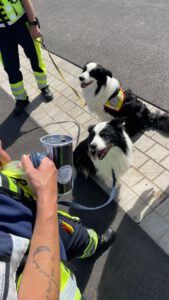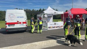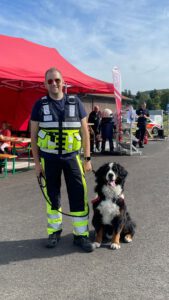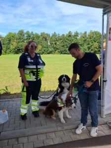 Die Besucher konnten die Hunde hautnah erleben, Fragen stellen und sich über die verschiedenen Sucharten – wie Flächensuche und Mantrailing – informieren. Besonders beeindruckend war eine kleine Vorführung, bei der die Hunde ihr Können unter Beweis stellten und mit ihrer feinen Nase eine versteckte Person auf dem Gelände aufspürten.